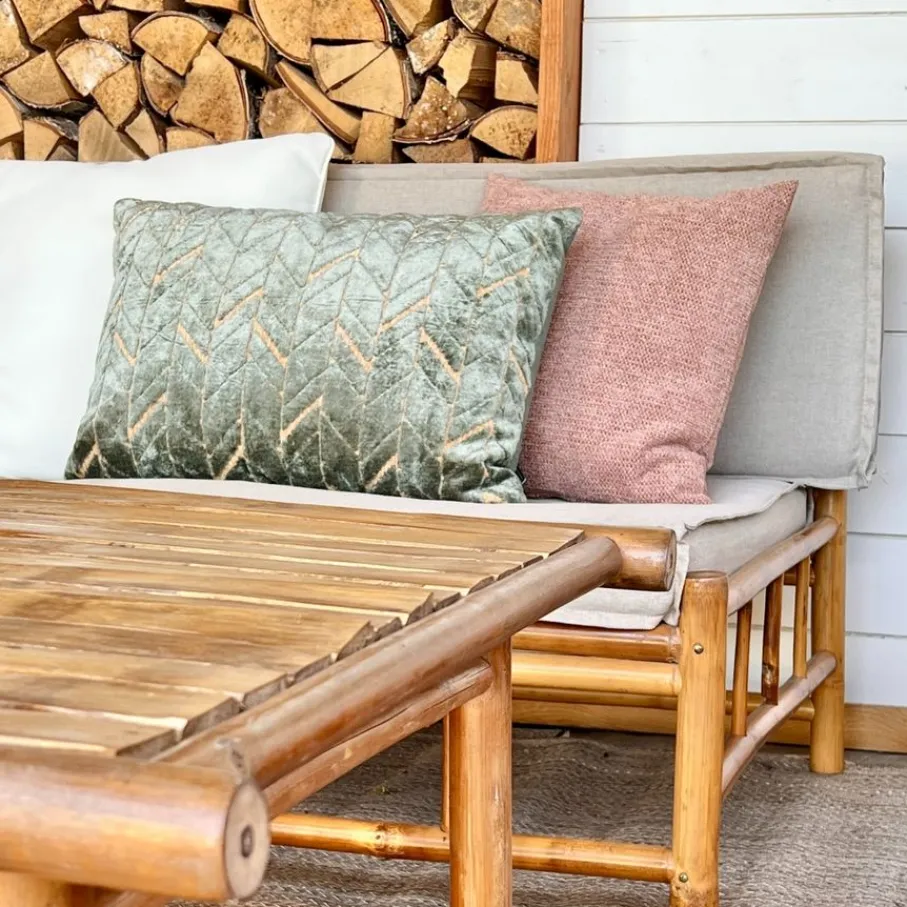 - Het vierkante formaat van 45×45 cm is super veelzijdig, maar voor een hele grote loungebank is een speelse mix van verschillende formaten vaak nét iets sfeervoller.