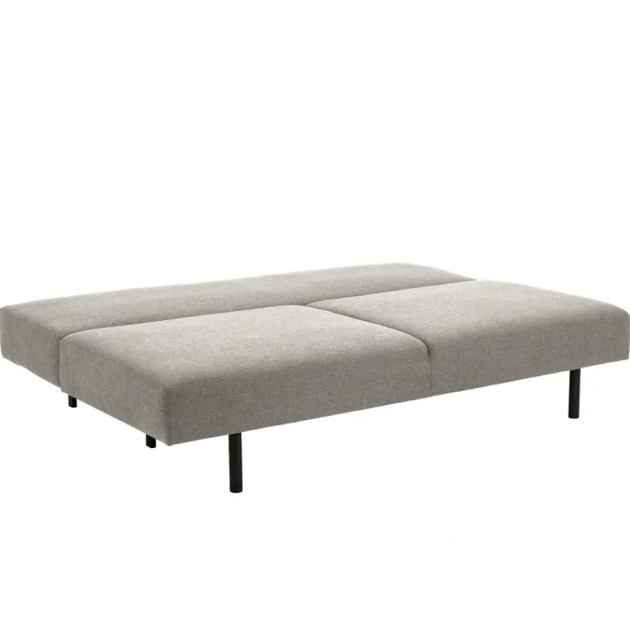 Slaapbank Luz heeft een vast zitkussen en losse rugkussens. De zithoogte 42 is cm en de zitdiepte is 58 cm. Door het metalen onderstel uit te trekken en de rugleuning naar beneden te klappen, transformeer je de slaapbank eenvoudig tot een comfortabel tweepersoonsbed van 200×139 cm.