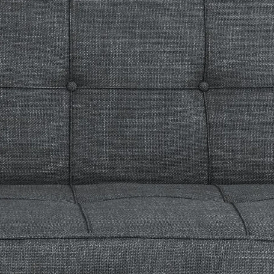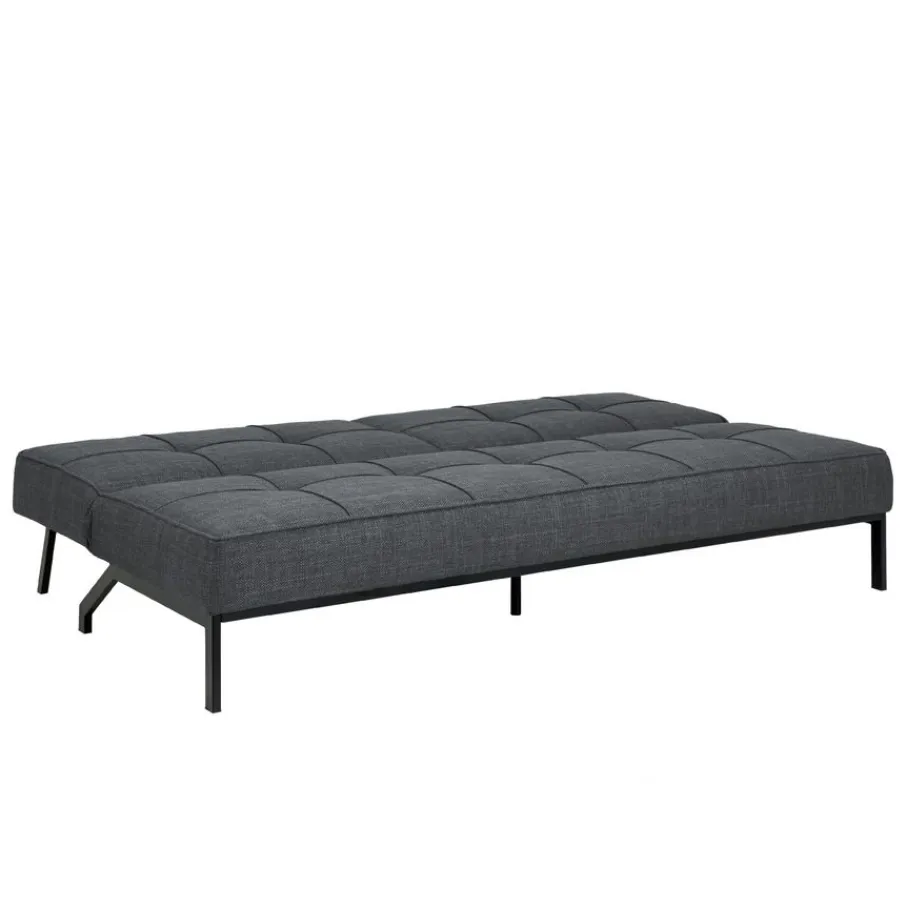 De slaapbank is bekleed met stof Basel, een materiaal met een mooie geweven structuur. Een slijtvaste en sterke stof van 100% polyester. De donkergrijze kleur is modern en stijlvol en combineert makkelijk.