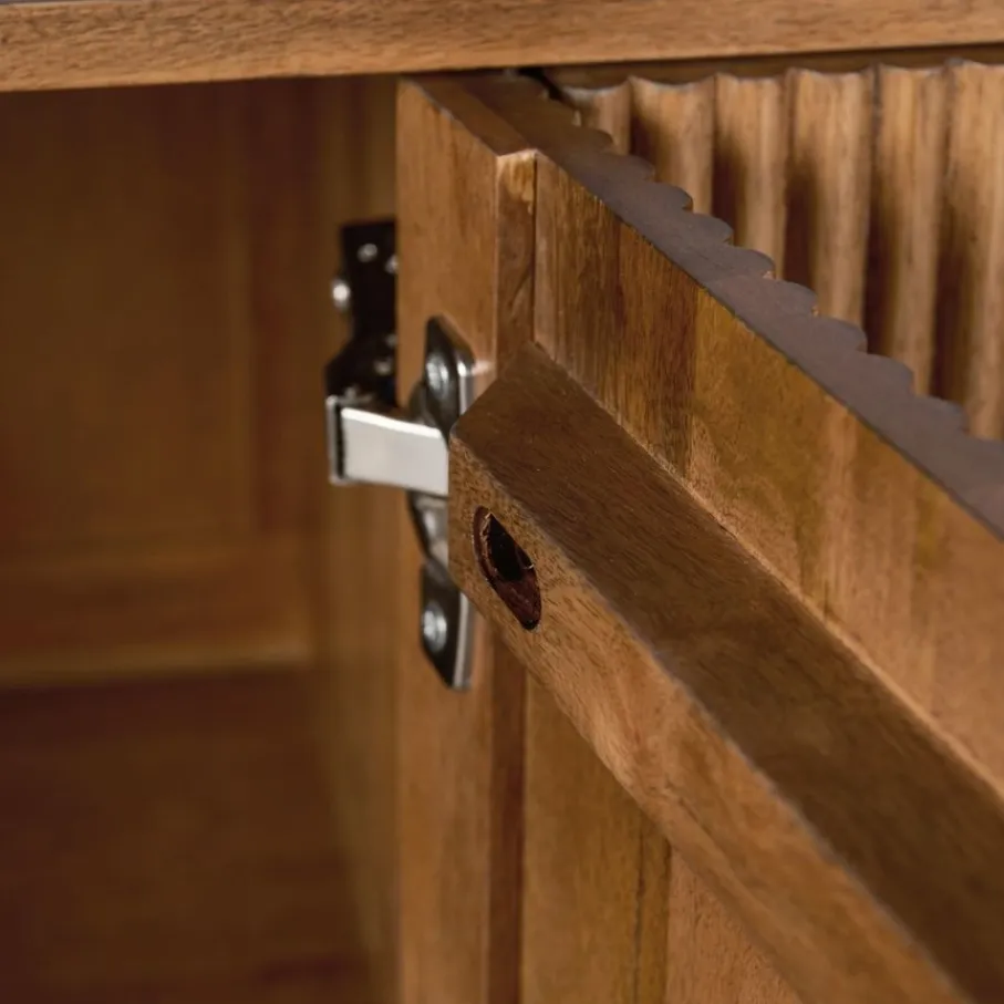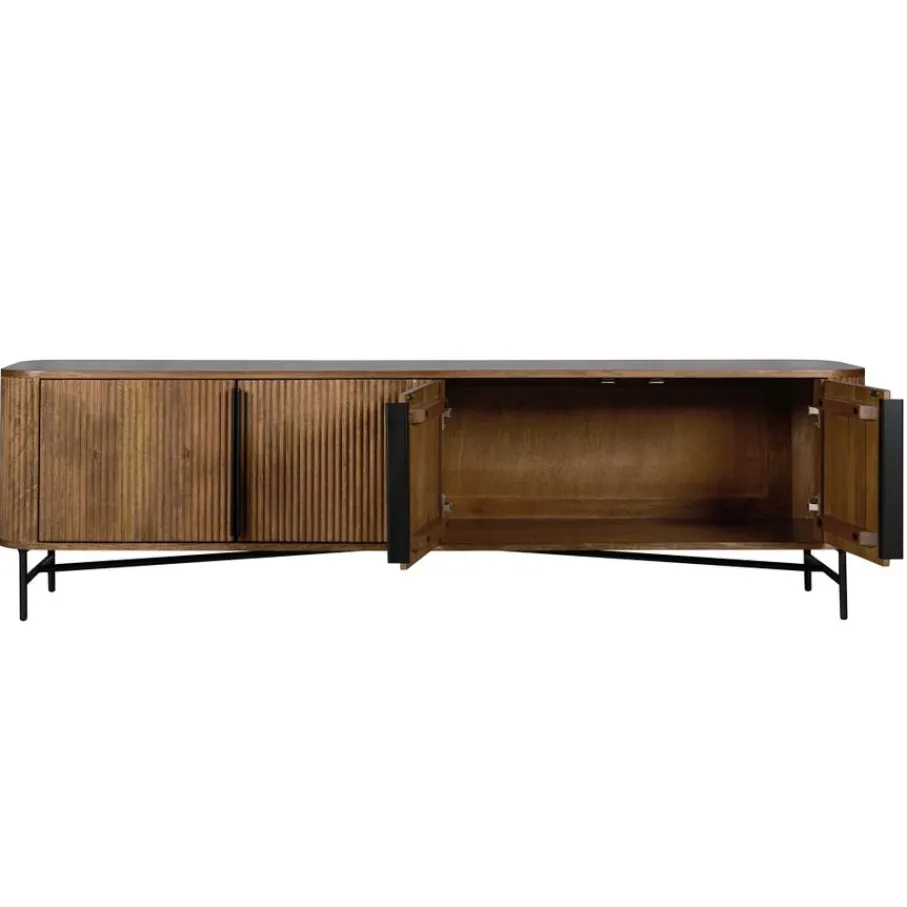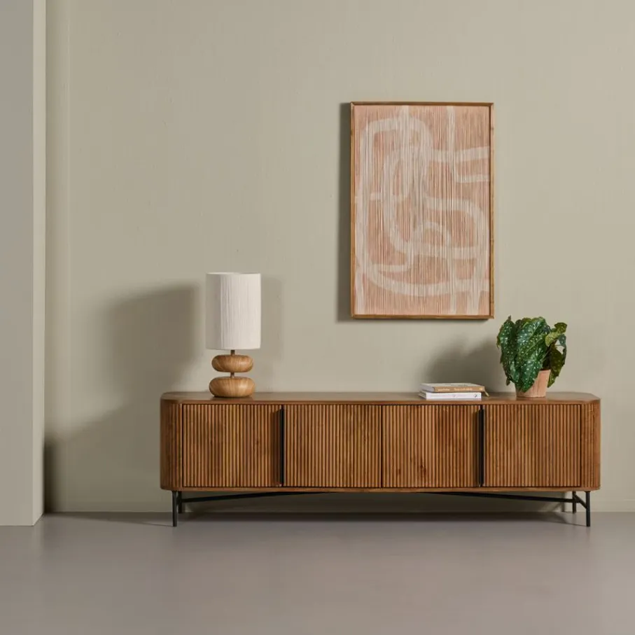 - Geef je interieur direct een stijlvolle upgrade met dit unieke tv-meubel, dankzij de ronde lijnen en elegante lamellen die overal passen.