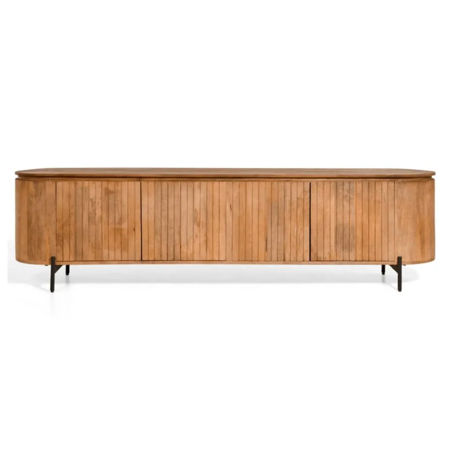 - Geef je interieur een luxe upgrade met tv-meubel Viktor, door het gelakte mangohout en de stijlvolle ribbeldeuren.