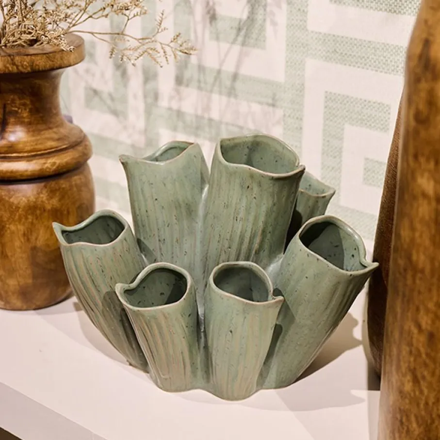 Met vaas Koral haal je, op stijlvolle wijze, een oase van rust in huis! Deze prachtige vaas heeft een speelse organische vorm met meerdere halzen. Het is gemaakt van keramiek in een frisse groentint, en hiermee is het een echte blikvanger. Perfect om je favoriete bloemen in te zetten of juist als stijlvol decoratiestuk op zichzelf. Je creëert er in een handomdraai een gezellige en trendy look mee. Zoek je nog een mooie toevoeging aan je interieur? Dan is vaas Koral precies wat je zoekt!