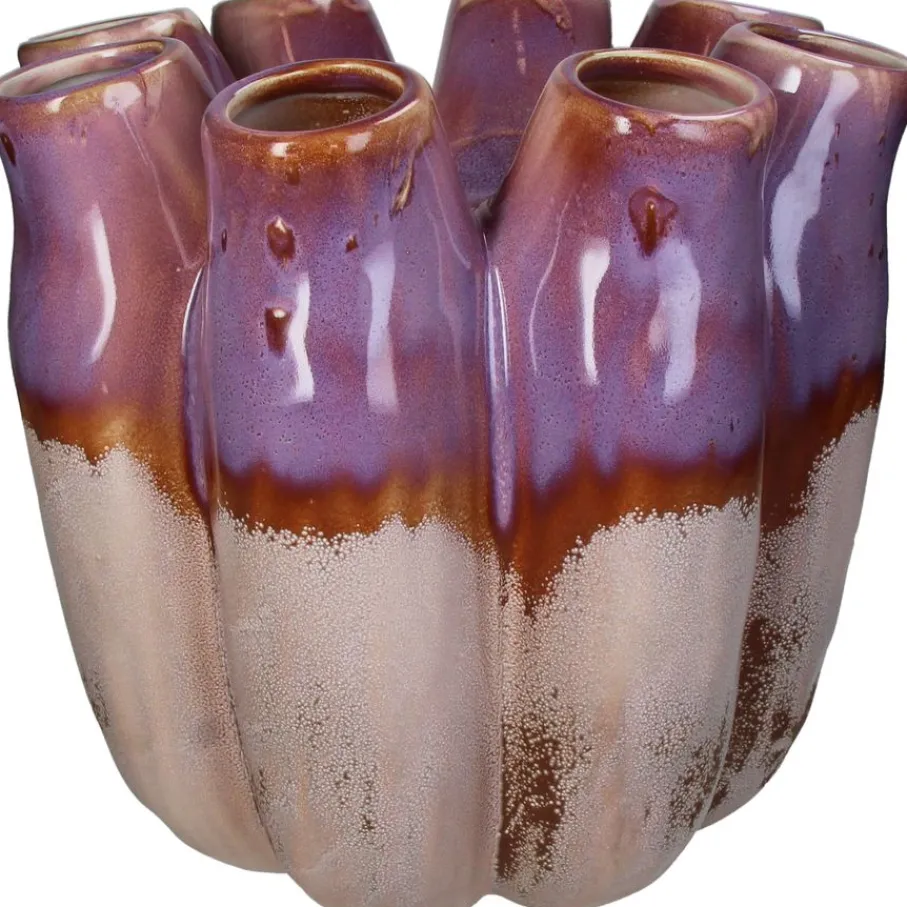 Vaas Mina zorgt voor nét dat beetje extra sfeer in jouw interieur en is hiermee je nieuwe favoriete woonitem! Deze prachtige vaas van stevig keramiek heeft een elegant ombre effect in warme paarstinten. Met een unieke, organische vorm voegt Mina een speels en modern element toe aan elke ruimte. Of je nu kiest voor een weelderig boeket of een paar simpele takken; vaas Mina maakt van elke bloem een kunstwerk. Vaas Mina staat prachtig op je eettafel, dressoir of zelfs in de vensterbank en is dé manier om jouw interieur een frisse, trendy touch te geven.