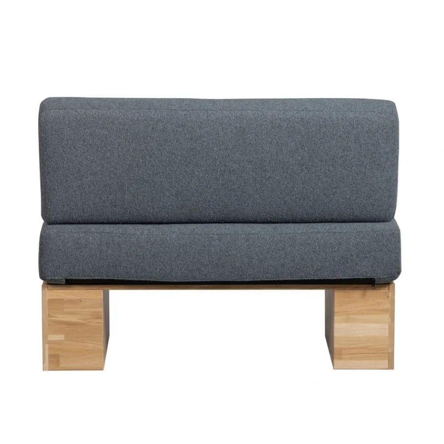 - Dit bankje is ontworpen als muurbank; het rugkussen komt het beste tot zijn recht met een stevige muur als fijne steun.