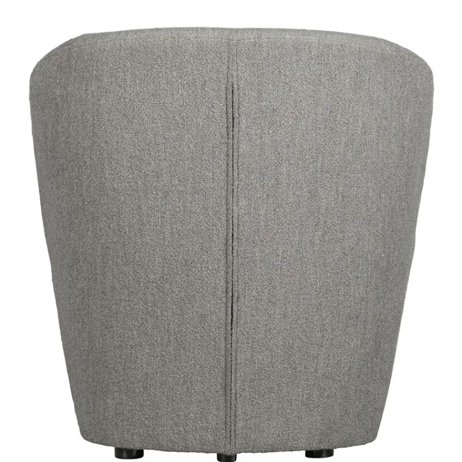 De fauteuil is gestoffeerd met een zachte bouclé stof in een middelgrijze kleur. Deze sterke stof is gemaakt van een mix van 96% polyester en 4% polyacryl en is geschikt voor intensief woongebruik.