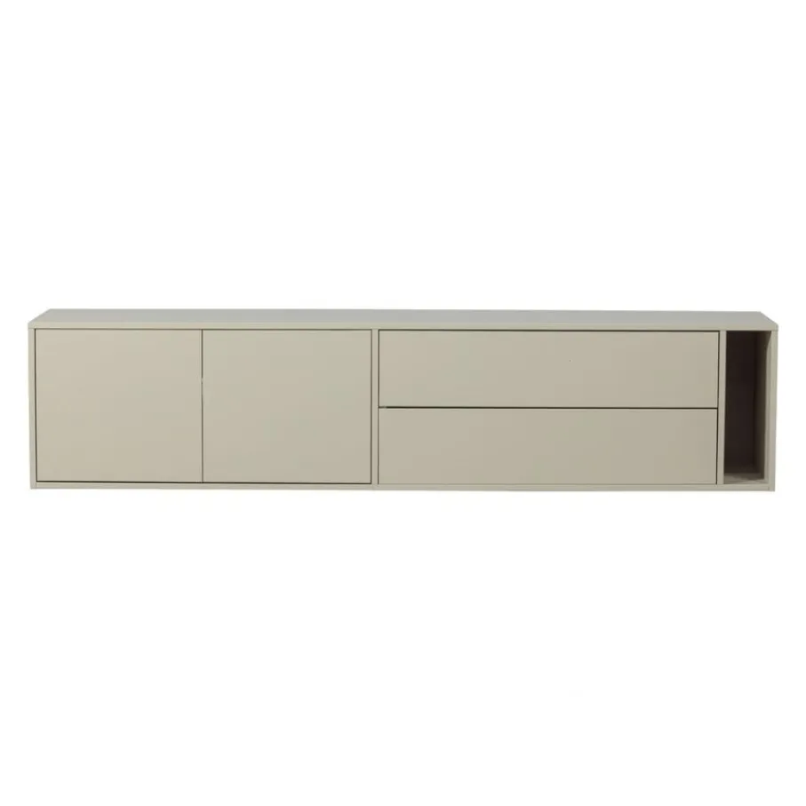 TV-meubel Settle Down wordt in twee pakketten geleverd en moet nog gemonteerd worden. Het item is eenvoudig te monteren aan de hand van de duidelijke montagehandleiding. Plaats aan de onderzijde viltglijders ter bescherming van harde vloeren. Bevestig voor een stabiele stand de bijgeleverde valpreventie direct in de muur.