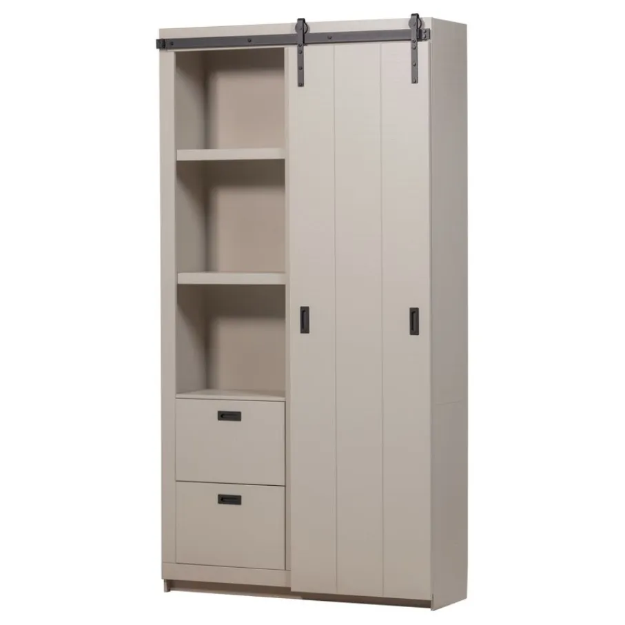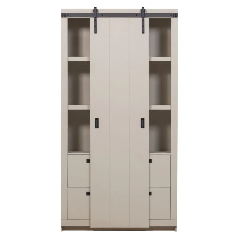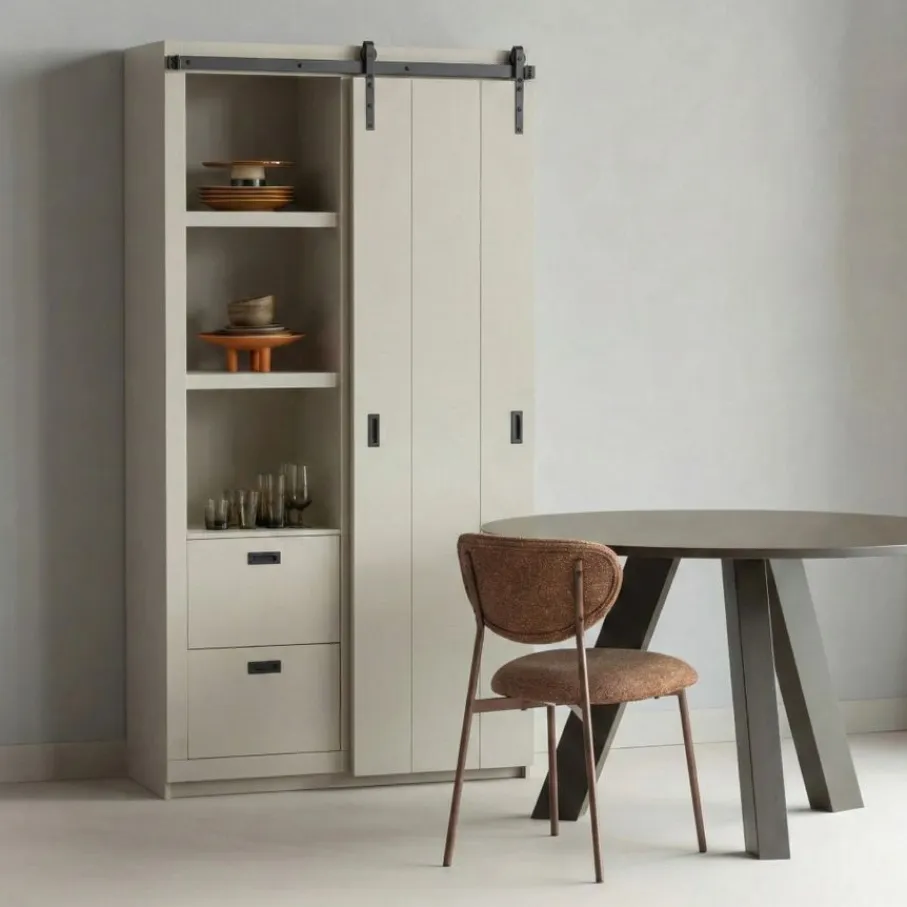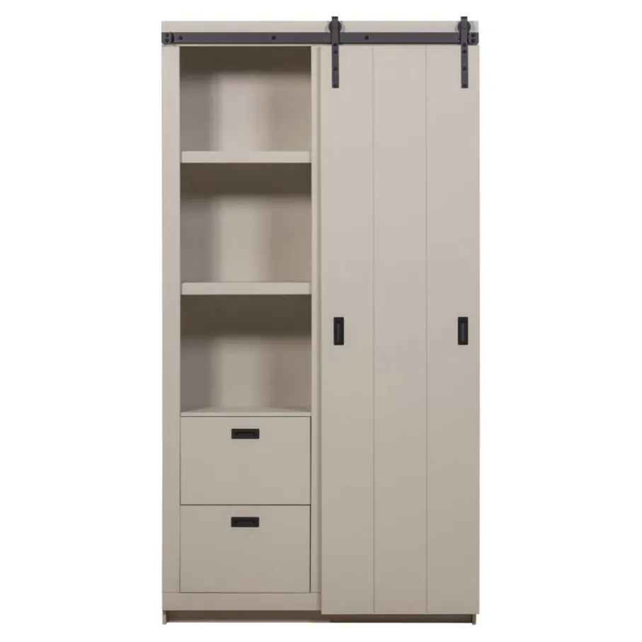 - Geef je interieur een authentieke en trendy twist met deze prachtige kast! De kenmerkende schuifdeur en grof bezaagde afwerking zorgen direct voor een unieke look.