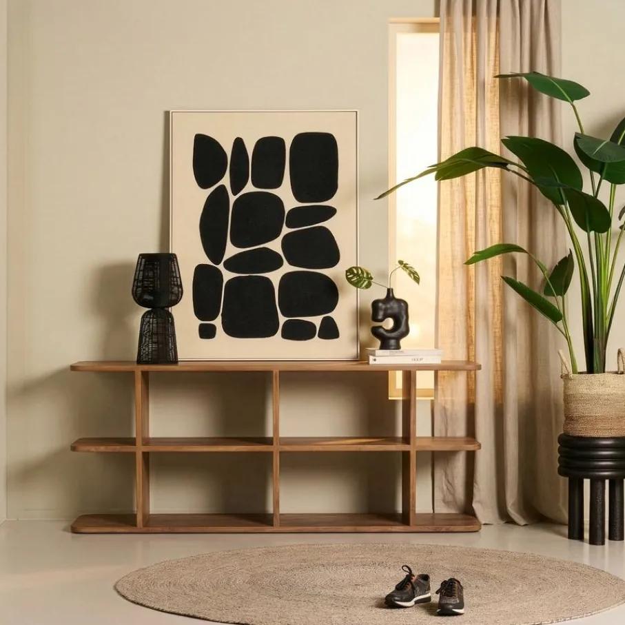 - De lage hoogte (70 cm) is ideaal om een ruimtelijk gevoel te behouden, maar biedt geen plek voor verticale opbergers zoals hoge vazen of standaards.