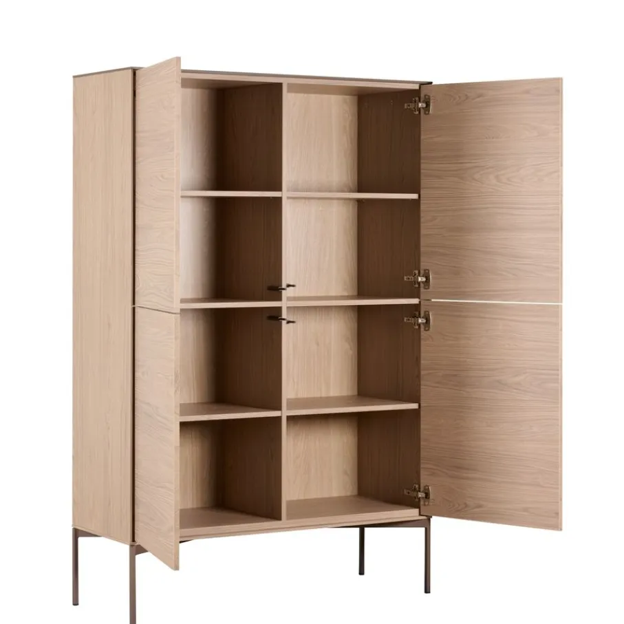 Wandkast Fado is niet alleen mooi, maar ook functioneel. Met vier draaideuren biedt de kast volop opbergruimte voor al jouw spullen. Het softclose mechanisme zorgt ervoor dat de greeploze deuren en lades soepel en geruisloos sluiten. De binnenkant van de kast is praktisch ingedeeld, ideaal voor het opbergen van zowel grote als kleine items.