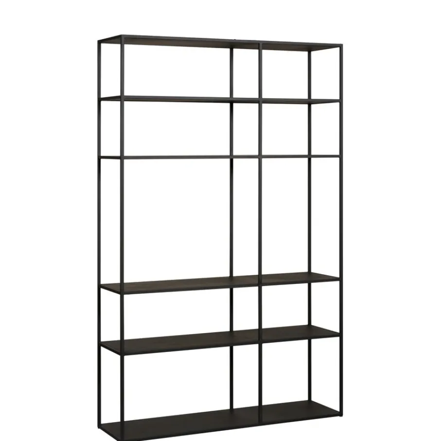 - Geef je interieur een stoere, industriële touch met het strakke zwarte metalen frame en de elegante zwarte MDF planken.