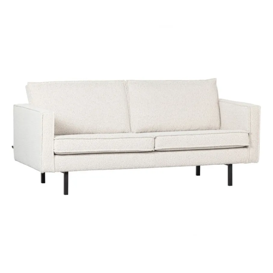 Deze Rodeo is bekleed met een zachte bouclé stof in crème kleur. Dit materiaal heeft een elegante textuur die voor warmte in huis zorgt. De dichte weeftechniek zorgt voor de sterkte van de stof, dit maakt dat het niet snel zal slijten of scheuren. Met een Martindale van 100.000 is deze bouclé stof geschikt voor intensief woongebruik.