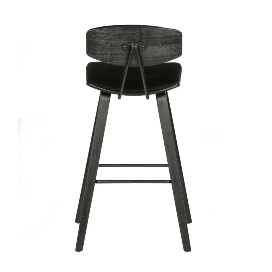 De Senn barstoel van WOOOD Exclusive heeft een modern ontwerp met stoere uitstraling. De zitting en rugleuning van Senn zijn gemaakt van zwart multiplex en bekleed met een zachte velvet stof in zwarte kleur. Het slanke frame is gemaakt van multiplex voorzien van een zwarte afwerking. Tussen de poten zit een metalen stang om de voeten comfortabel op te laten rusten.