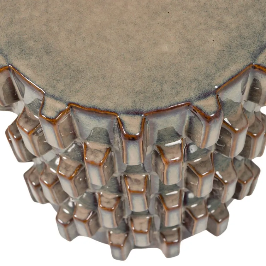 Bijzettafel Axu van WOOOD is een ware blikvanger met zijn unieke, geometrische structuur en glanzende afwerking. De glazuurlaag geeft elk item een eigen karakter, met subtiele variaties in de grijsblauwe kleur. Door het compacte formaat is de tafel veelzijdig inzetbaar; als podium voor een plant, naast de bank voor je drankje of als decoratief object in een lege hoek. Met zijn opvallende ontwerp geeft bijzettafel Axu elke ruimte een artistieke touch.