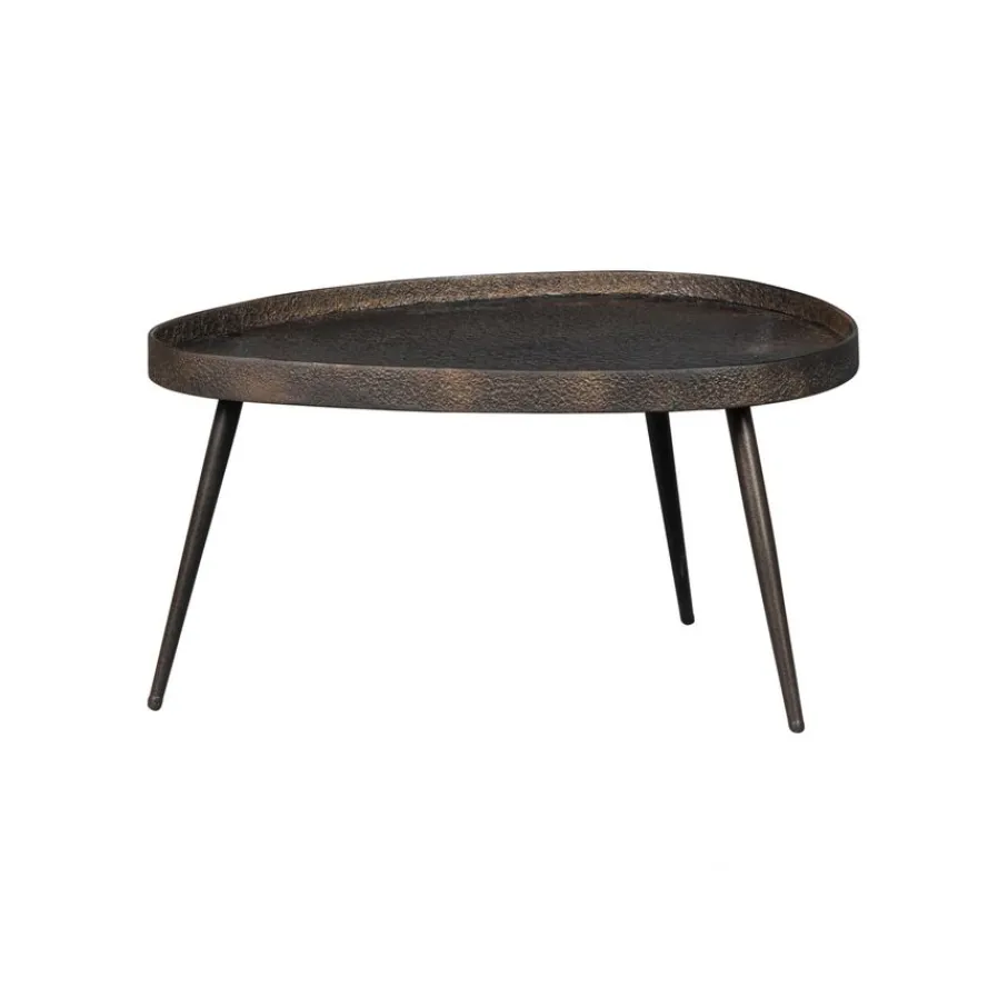 - Een unieke blikvanger voor je interieur: Met hun organische vormen, de stoere combinatie van metaal en hout en de antique bronze afwerking, zijn deze tafels een waar kunstwerk in huis.