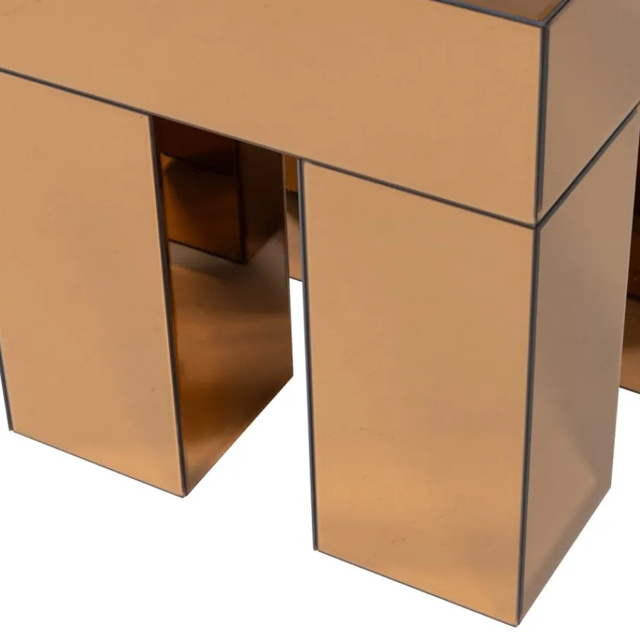 - Een echte eyecatcher: Het luxe spiegelglas in een warme koperbruine tint maakt Mirrox een stijlvolle blikvanger die direct sfeer toevoegt aan jouw interieur.