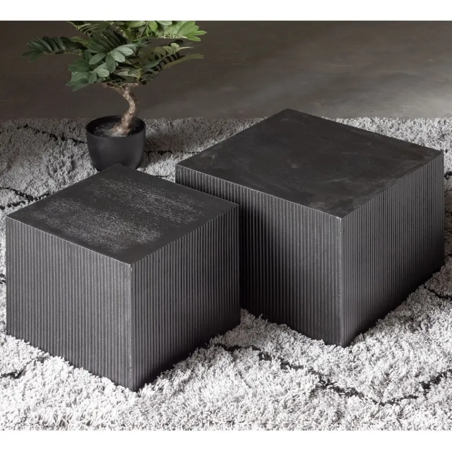 De grote Sanne bijzettafel is 50×50 cm en 40 cm hoog. De kleine Sanne bijzettafel is 40×40 cm en 37 cm hoog. Deze tafeltjes van WOOOD zijn gemaakt van zwart hout. De natuurlijke kenmerken, zoals de nerf en knoesten, zijn nog mooi zichtbaar.