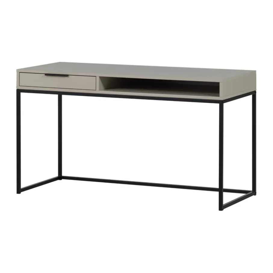 - Dit bureau heeft geen geïntegreerde opbergruimte, dus voor een super georganiseerde werkplek is een ladeblok of leuke mandjes erbij een slim idee.