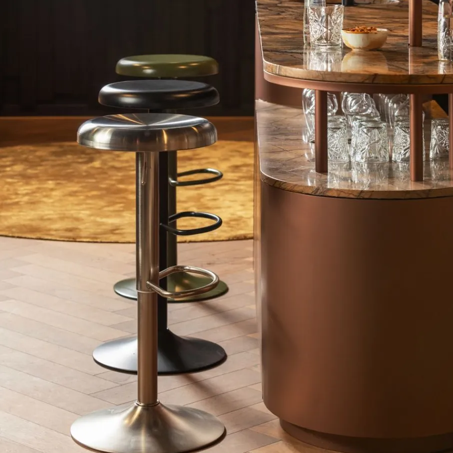 - Compact zitvlak: Het ronde zitvlak is perfect voor aan de bar, maar biedt een andere beleving dan een brede, diepe stoel.