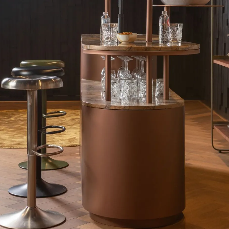 - Het ronde zitvlak is perfect voor aan de bar, maar biedt een andere zitervaring dan een brede, diepe stoel.