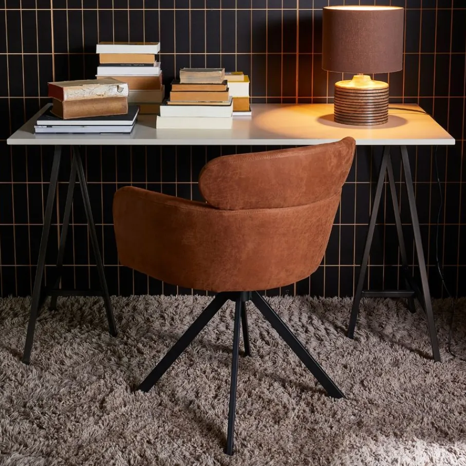 - Stevig en modern design: De combinatie van de robuuste lederlook en het zwarte metalen spinpoot onderstel zorgt voor een eigentijdse en stabiele basis in je huis.
