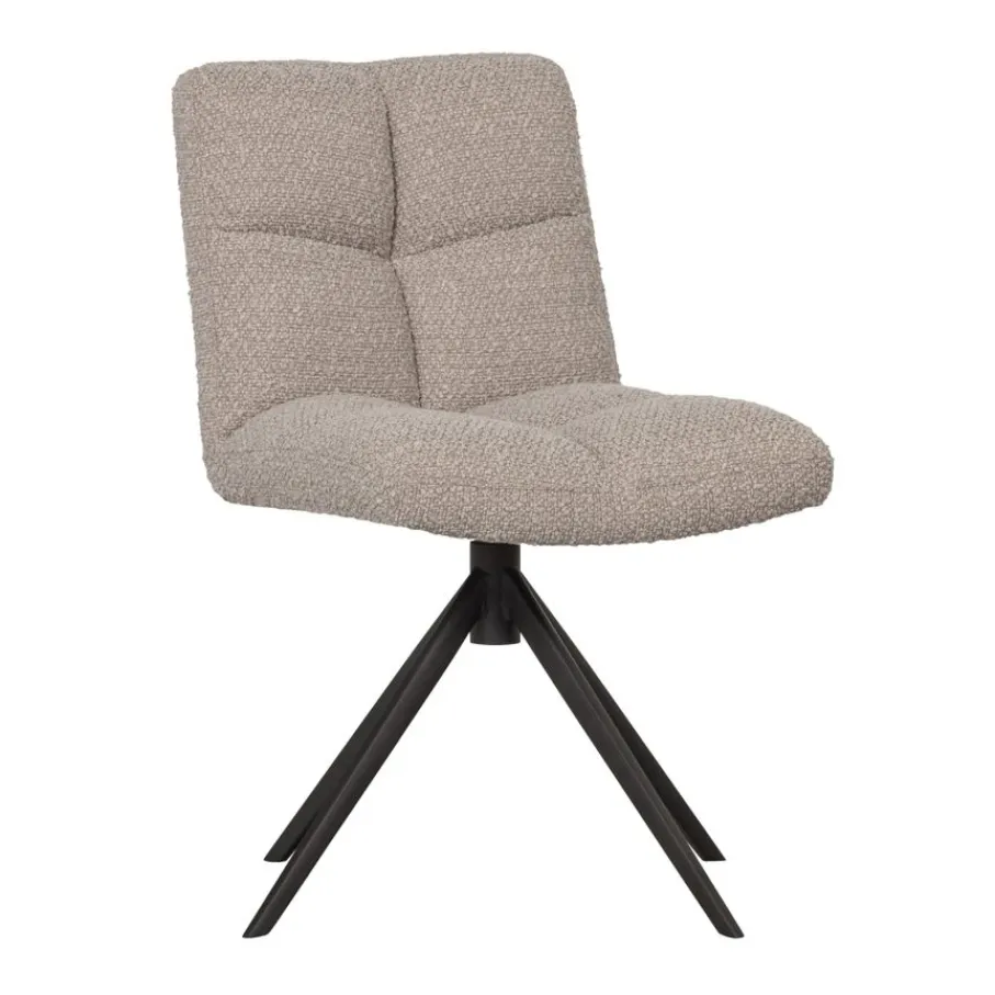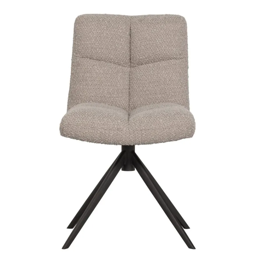 Eetkamerstoel Vinny is bekleed met een zachte bouclé stof van 100% polyester. Een sterke stof die makkelijk in onderhoud is.