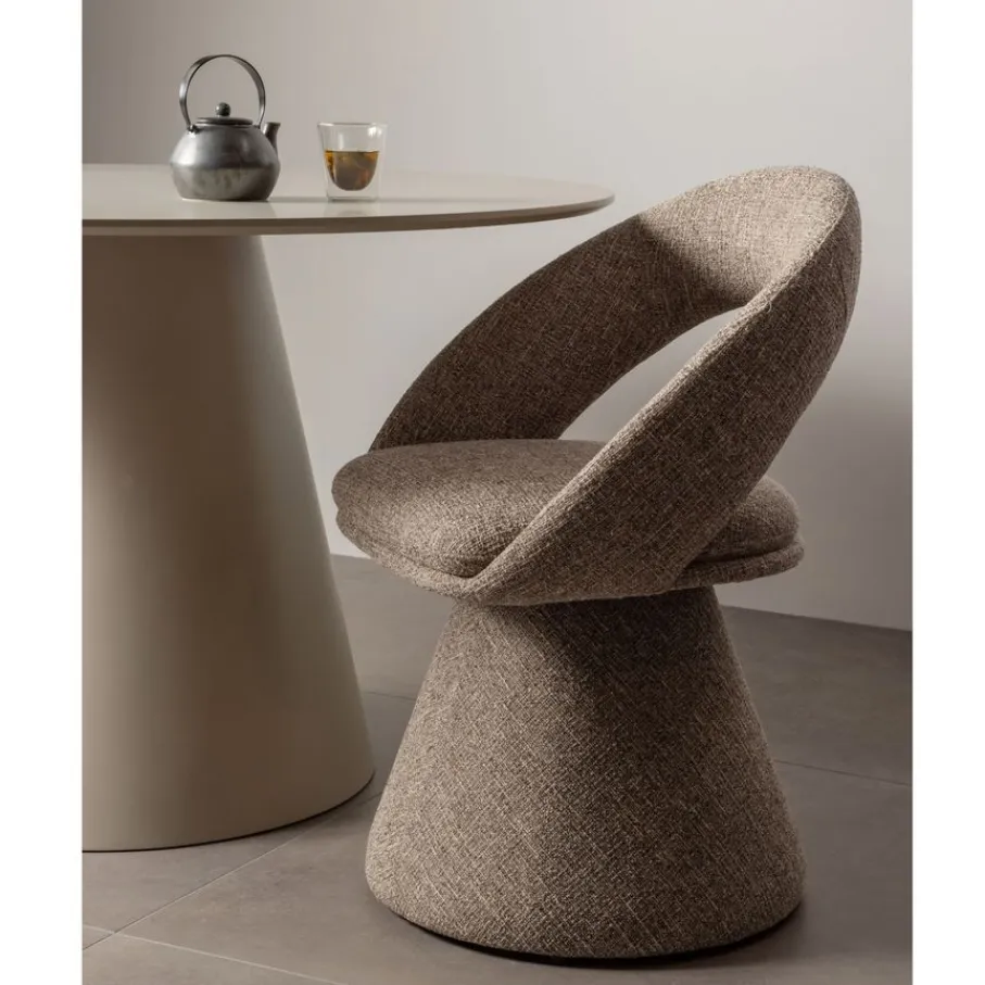 - Volledig gestoffeerd tot de vloer: De poot is prachtig afgewerkt in dezelfde stof, wat de stoel een naadloze look geeft. Hierdoor mist het de mogelijkheid voor een contrasterend onderstel.