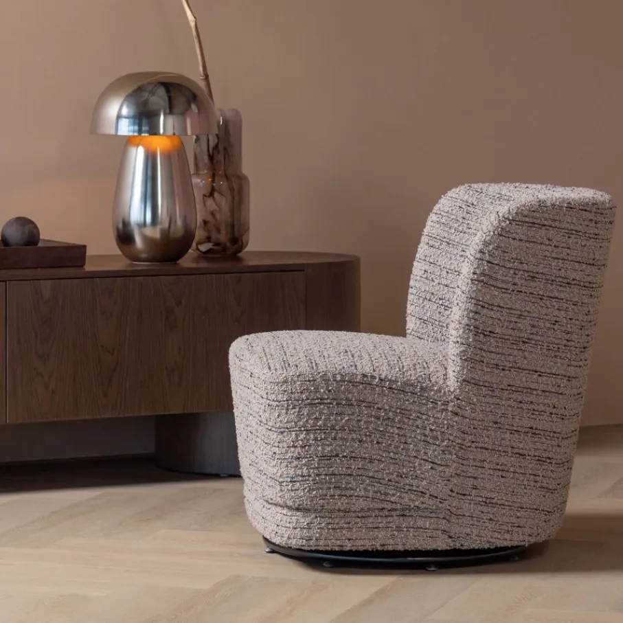 Draaifauteuil Atty van WOOOD is een veelzijdige en comfortabele toevoeging aan je interieur. Dankzij de draaibare voet kun je gemakkelijk van positie wisselen, wat de stoel ideaal maakt voor een dynamische zithoek. Het moderne ontwerp zonder armleuning en de neutrale kleurstelling zorgen ervoor dat Atty in diverse woonstijlen past. Draaifauteuil Atty biedt de perfecte plek om na een lange dag tot rust te komen met een goed boek of voor een gezellig gesprek.