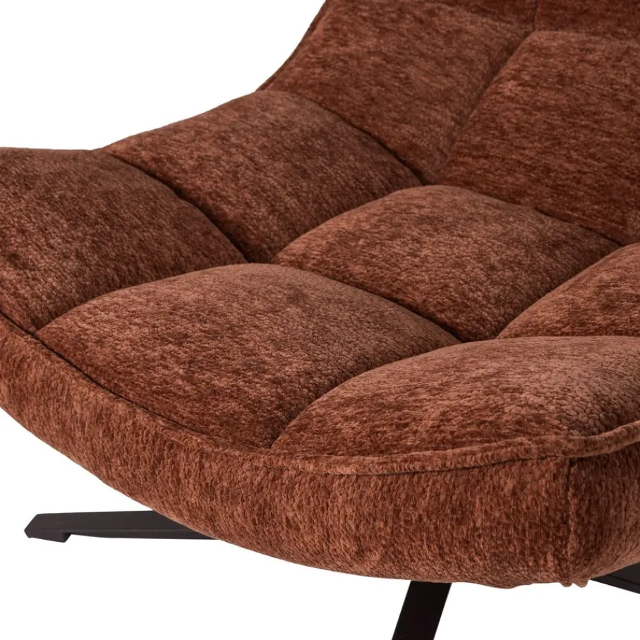 De fauteuil is bekleed met een chenille stof (Clover), vervaardigd uit 100% polyester. Deze stof staat bekend om zijn zachte grip en de zichtbare structuur die diepte aan de kleur geeft. Met een Martindale-score van 10.000 is de stof geschikt voor normaal woongebruik.