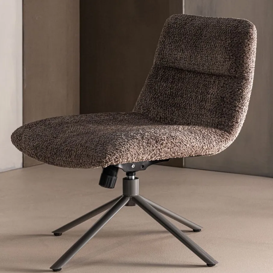 Fauteuil Soren is een comfortabele en moderne relaxfauteuil die in elke ruimte een statement maakt. De draaibaarheid en verstelbaarheid maakt Soren ideaal als comfy leesstoel of als extra zitplaats in je living. Het ontwerp combineert een zachte zitting met een strak, bruin metalen onderstel. Deze looks maken van draaifauteuil Soren een musthave voor ieder interieur.