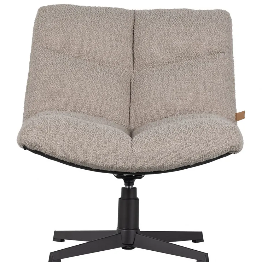 Vinny is bekleed met een bouclé stof van 100% polyester. Deze zachte stof heeft een grove structuur en een neutrale zandkleur. Voor extra comfort en robuustheid zijn de zitting en rug doorgestikt.