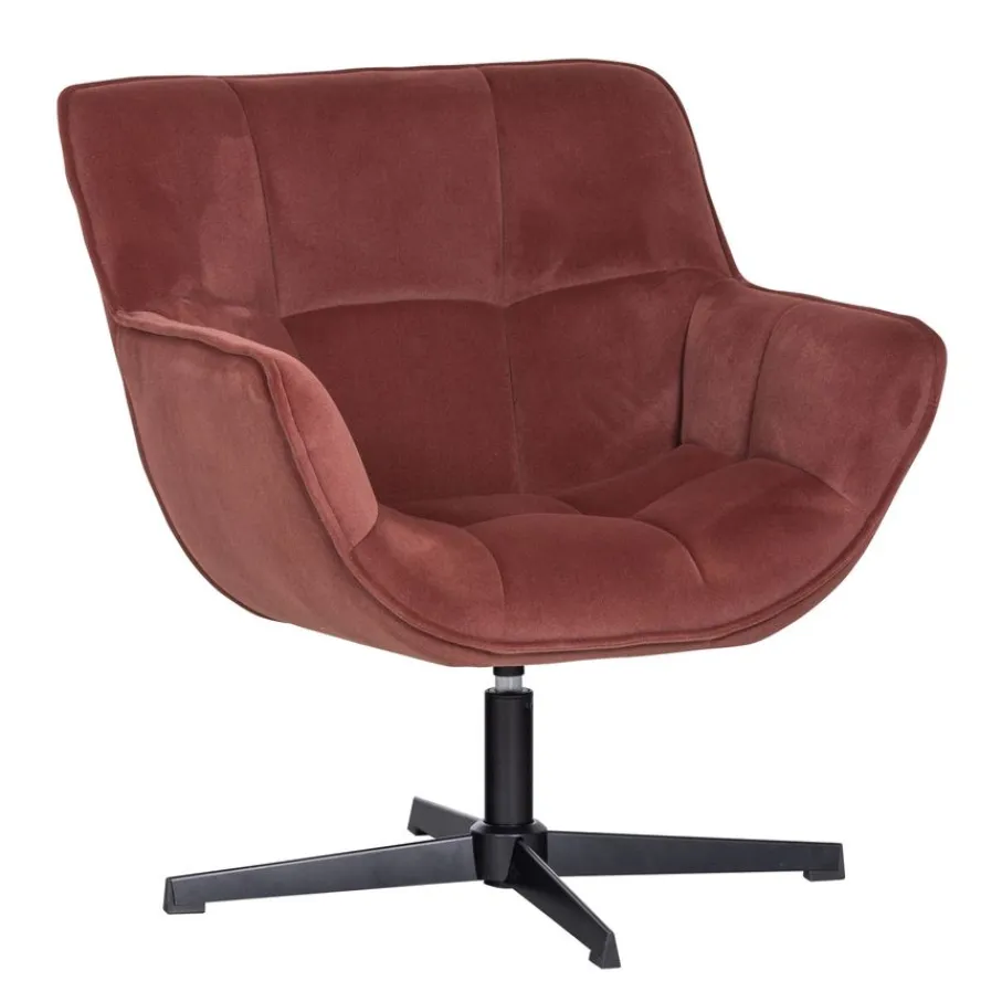 Draaifauteuil Wibo van WOOOD is een stijlvolle en comfortabele aanwinst voor elke zithoek. Het ontwerp combineert een moderne uitstraling met een uitnodigend karakter, waardoor de stoel perfect past in diverse interieurstijlen. De bruinrode kleur zorgt voor een warme sfeer en de praktische draaifunctie biedt extra gemak en flexibiliteit in de ruimte. Of je nu een boek leest of ontspant, draaifauteuil Wibo wordt al snel je favoriete plek.