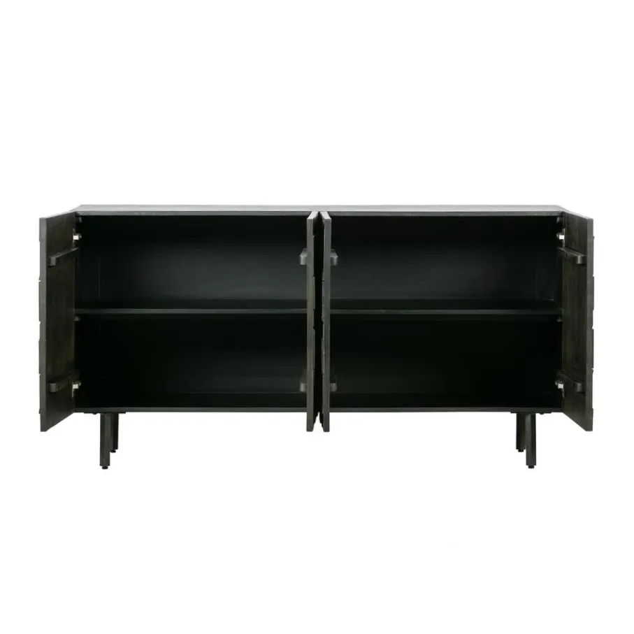 Dressoir Counter heeft 4 deuren met een luxe softclose sluiting. De kast is in 2 grote vakken verdeeld, met elk een 78 cm brede legplank. Deze planken kunnen eruit gehaald worden, maar zijn niet in hoogte verstelbaar. Elke plank kan maximaal belast worden met 10 kg.
