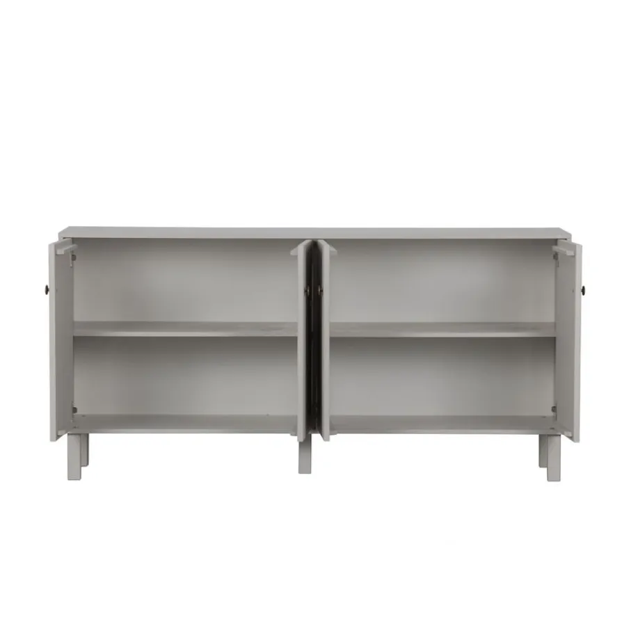 - Denk aan de ruimte die de vier openslaande deuren nodig hebben om comfortabel te openen, zodat dit dressoir perfect tot zijn recht komt.