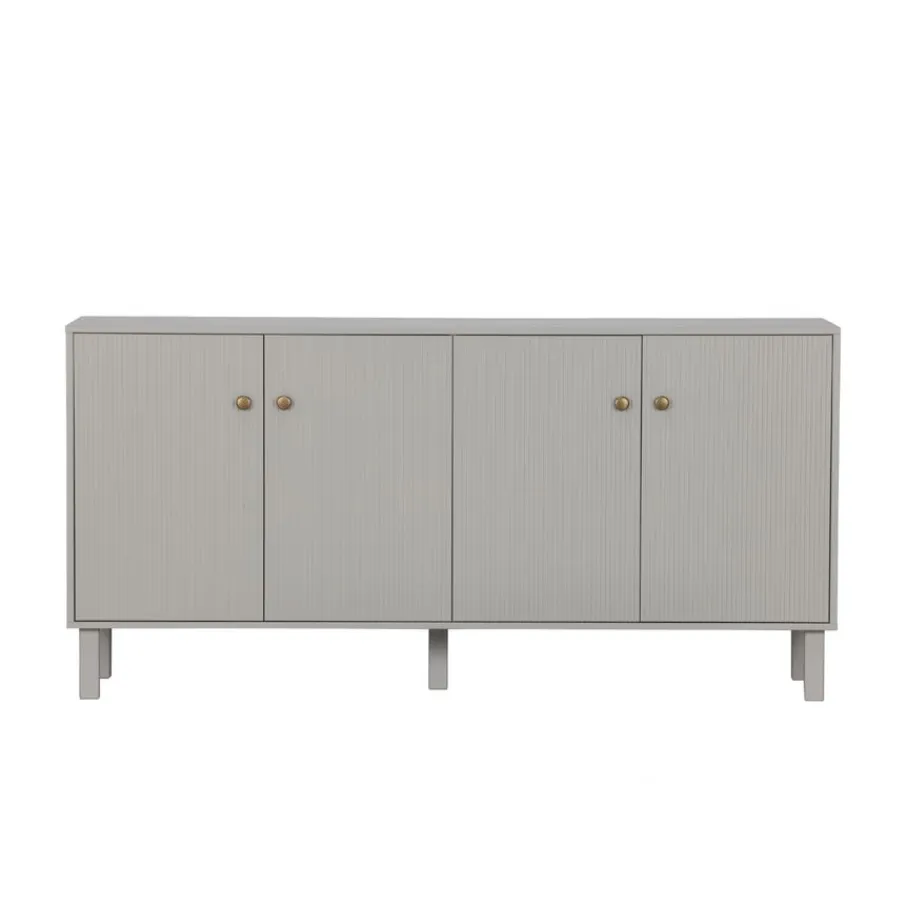 - Geef je interieur direct een moderne, stijlvolle boost met dressoir Madu! De wolkengrijze tint, verticale accenten en goudkleurige knoppen geven jouw woonkamer een chique touch.