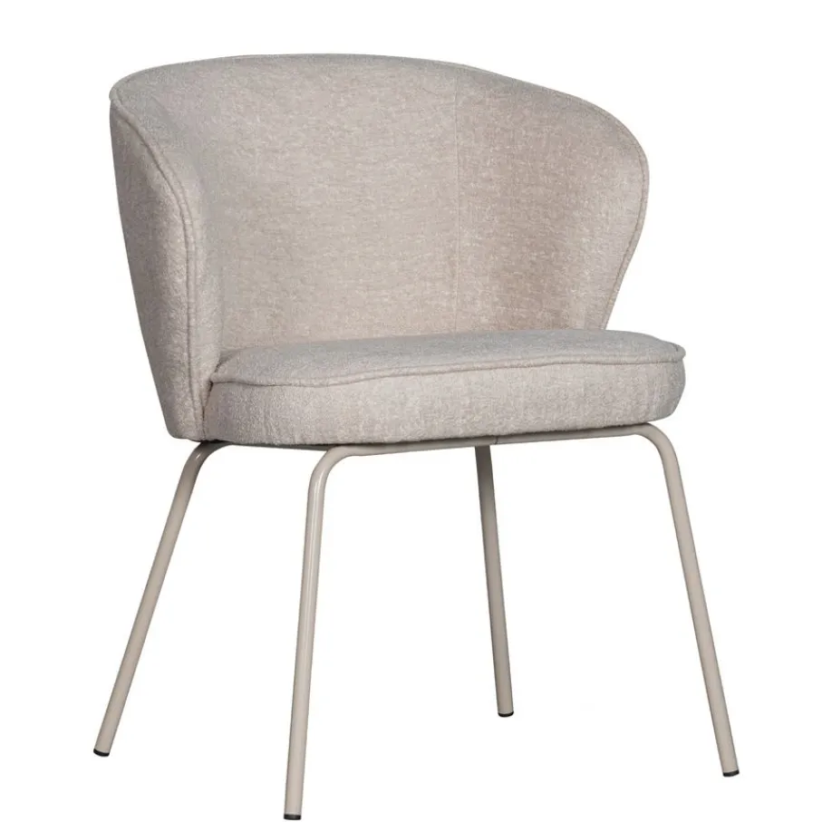 Het zitgedeelte van eetkamerstoel Admit is gestoffeerd met een zachte geweven stof, die voor warmte in huis zorgt. De stof is dicht geweven en met een Martindale van 100.000 is het zeer geschikt voor intensief gebruik. De gemêleerde beige tint is warm en tijdloos.
