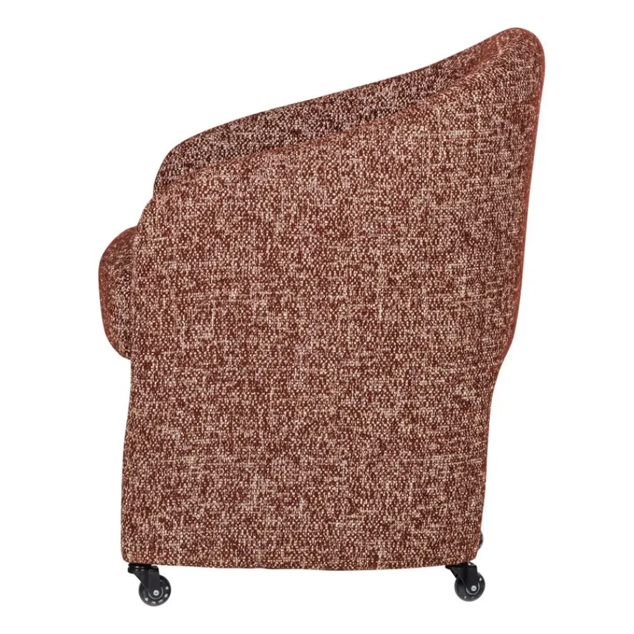 Eetkamerstoel Cordo van WOOOD combineert een uniek ontwerp met praktisch gemak voor aan de eettafel. Dankzij de wielen schuif je de stoel moeiteloos heen en weer. De kuipvormige zitting biedt een omhullend gevoel, wat ideaal is voor lange avonden tafelen met vrienden of familie. Het design is volledig gestoffeerd en hiermee zorgt eetkamerstoel Cordo voor een zachte en uitnodigende uitstraling in elke eetkamer.