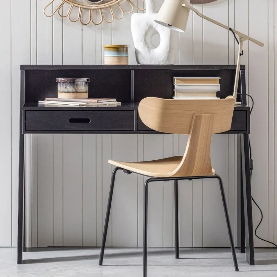 - Een échte eyecatcher door de luxe fineer van essenhout met die unieke, warme vlam, gecombineerd met stoere zwarte metalen poten.
