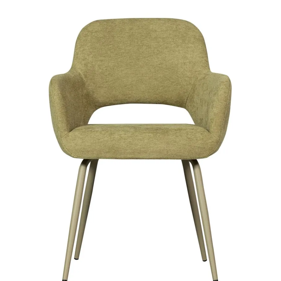 - Stevige metalen poten: Bieden uitstekende stabiliteit en een eigentijds contrast met de groene bekleding.