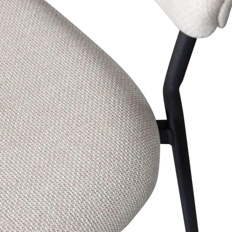 - Stijlvolle en tijdloze look: De combinatie van het slanke, zwarte metalen onderstel en de geweven stof geeft jouw eetkamer direct een frisse en moderne uitstraling.