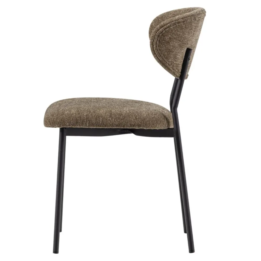 De zachte chenille bekleding van eetkamerstoel Kjeld is van 100% polyester. De combinatie van zachtheid, subtiele glans en stevige kwaliteit maakt deze stof tot een veelzijdige keuze voor zowel moderne als klassieke interieurs. De kleur Groen is een natuurlijke groentint.