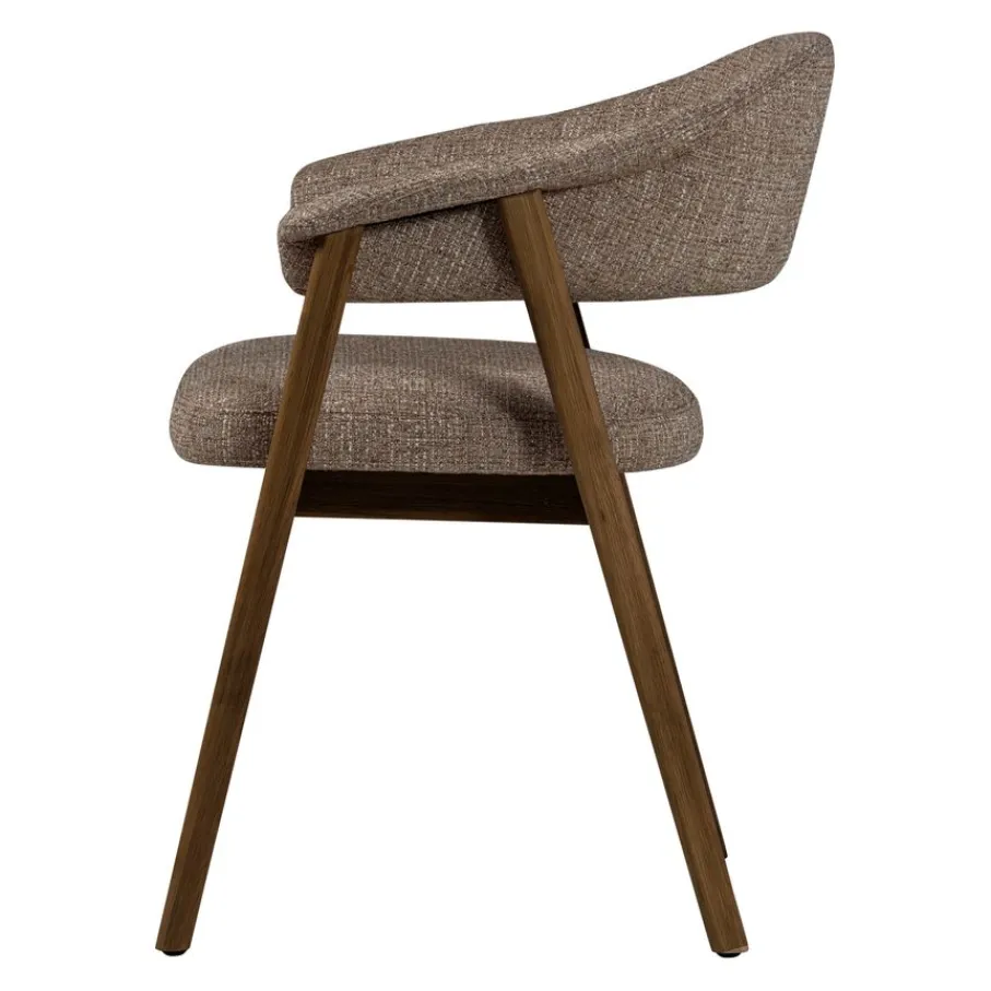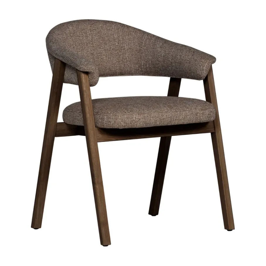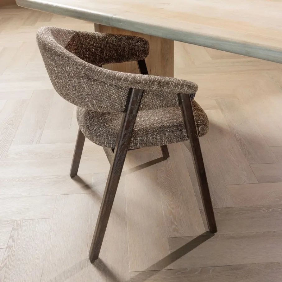Eetkamerstoel Tunar Bruin van WOOOD sfeer aan de eettafel. Het frame van bruin eikenhout vormt een fraaie combinatie met de bruine, robuust geweven bekleding. Dankzij het open design met een retro tintje past de stoel in diverse woonstijlen. Met een brede zit biedt eetkamerstoel Tunar een uitnodigende plek om aan te schuiven voor een diner met vrienden of familie.
