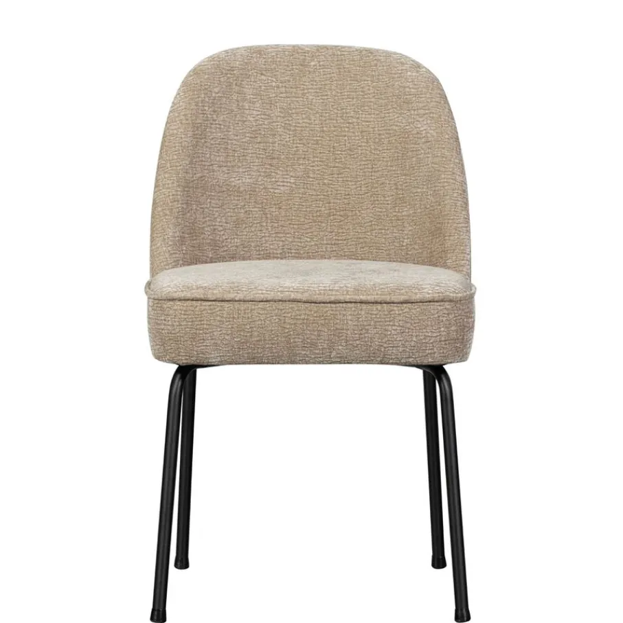 Deze Vogue eetkamerstoel is bekleed met een zachte chenille stof in de kleur Sand, een warme beige tint. De structuur stof is gemaakt van 100% polyester en heeft een zachte en aangename grip.