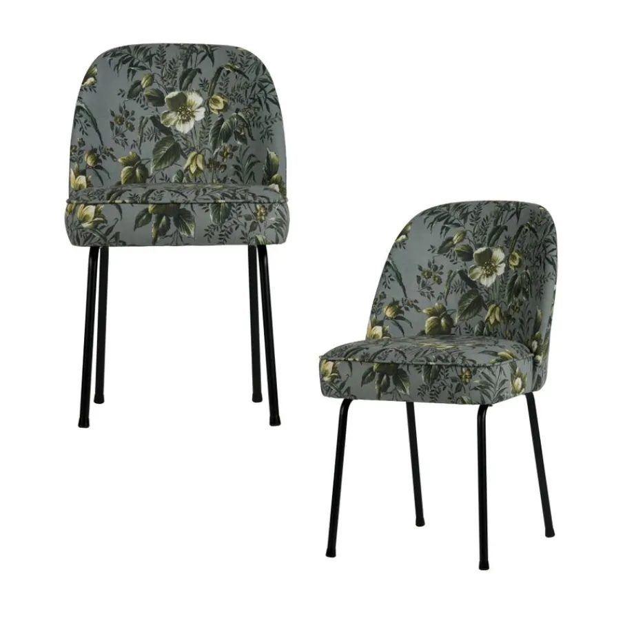 Deze mooie stoel is bekleed met een zachte velvet stof in de kleur Poppy Grey, een grijze kleur met een multi color bloemenprint. De stof is gemaakt van 100% polyester, een stof die niet snel verkleurt of verslijt.