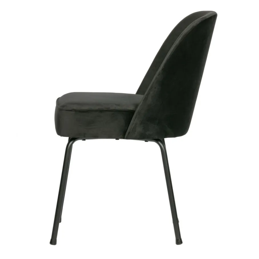Deze mooie stoel is bekleed met een zachte velvet stof in de kleur zwart. De stof is gemaakt van 100% polyester, een stof die niet snel verkleurt of verslijt.