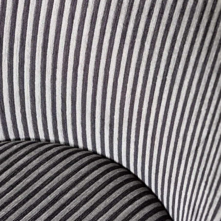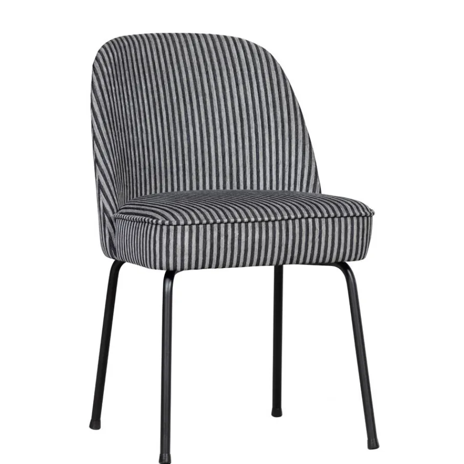 Deze Vogue eetkamerstoel is bekleed met een zachte stof met een gestreept patroon in zwart/grijs. De stof is gemaakt van 48% polyester, 31% rayon en 21% katoen. Het heeft een aangename grip en een volle en rijke uitstraling.