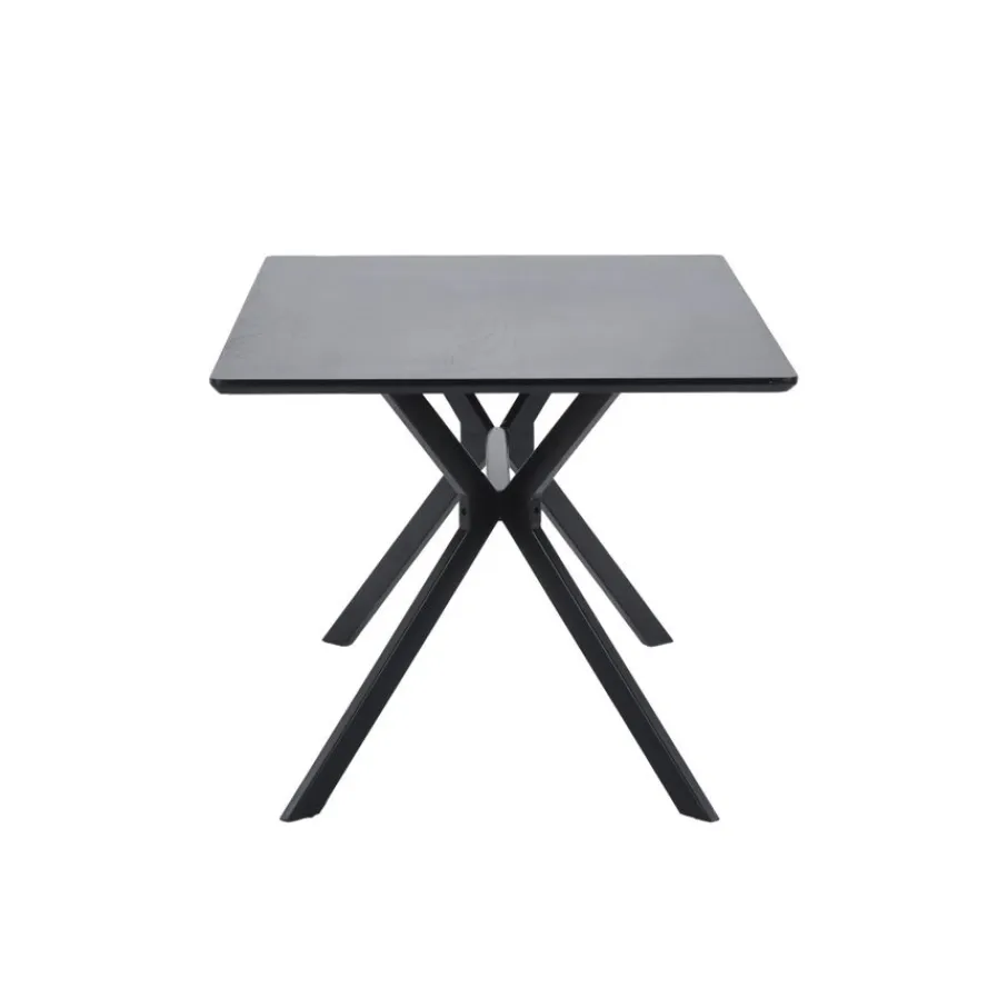 Eettafel Bruno is 160 cm lang, 90 cm breed en 75 cm hoog. Het blad van 25 mm dik is van stevig MDF, afgewerkt met een zwarte toplaag. We adviseren het gebruik van onderzetters ter voorkoming van krassen of vlekken. De tafel heeft een elegant zwart metalen onderstel dat nog gemonteerd moet worden.
