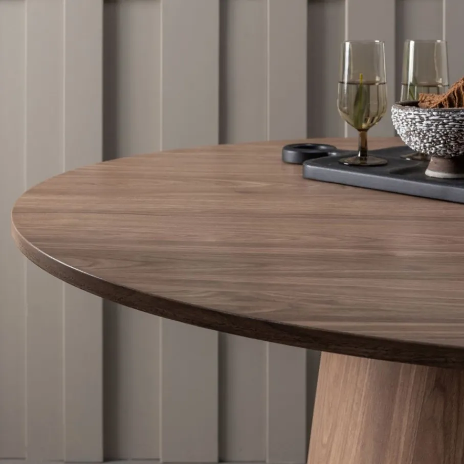 - De ronde vorm vraagt om ruimte: Deze charmante ronde tafel komt het mooist tot zijn recht in een eethoek waar hij vrijuit kan ‘ademen’ en de ruimte visueel verrijkt.
