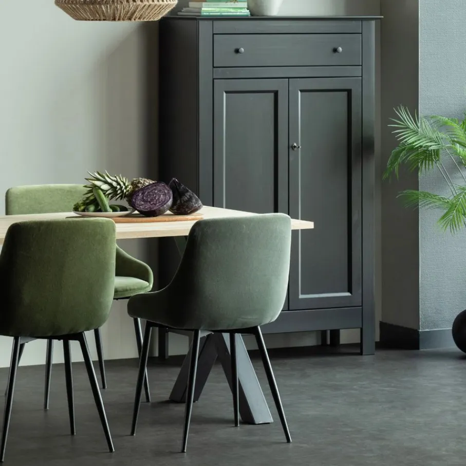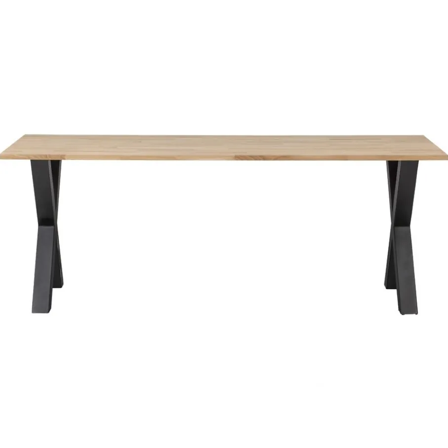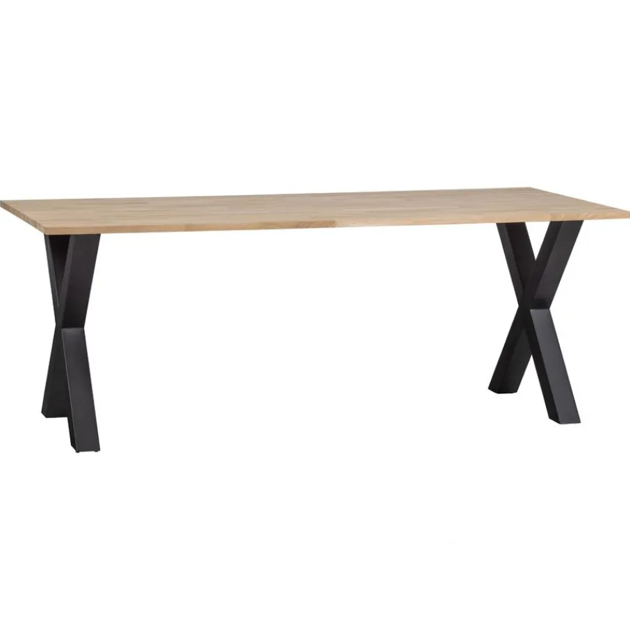 - Stoer én stijlvol: De robuuste X-poot van matzwart staal (8×8 cm) geeft de tafel een industriële touch die perfect past bij diverse woonstijlen.