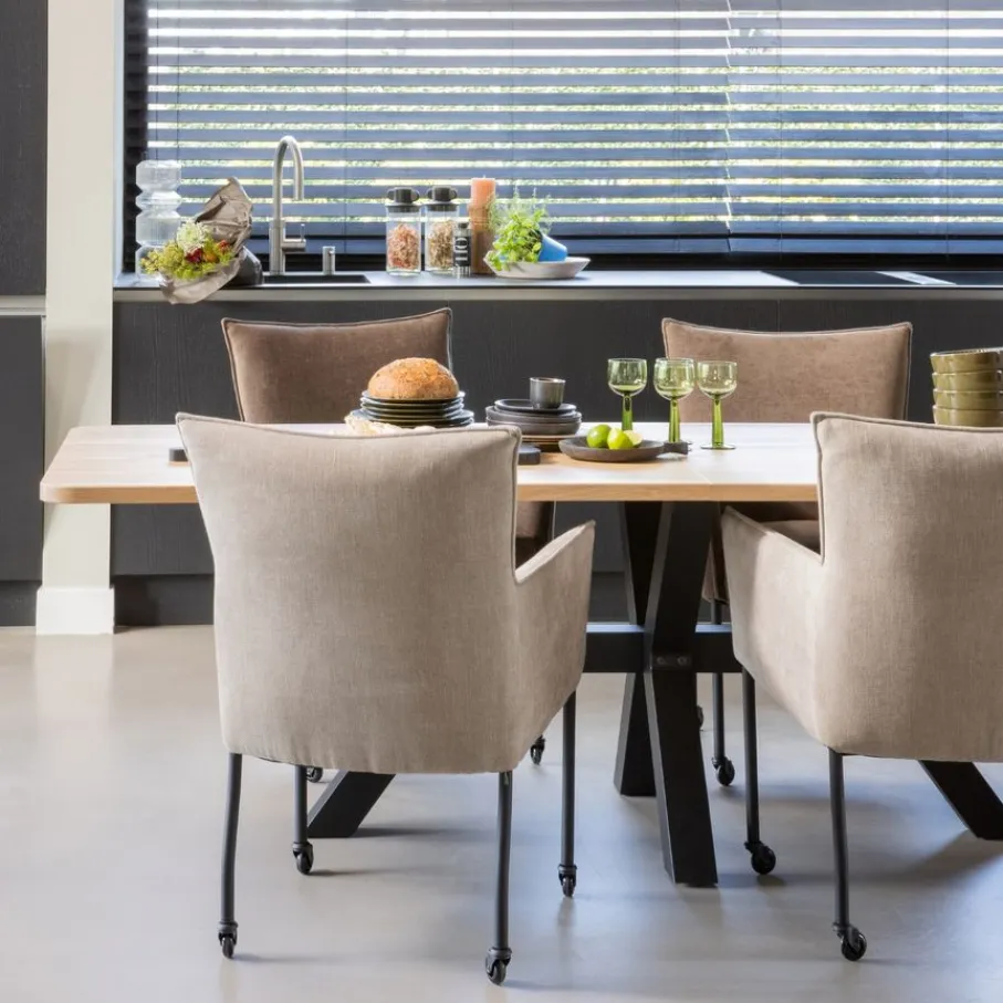 - Een indrukwekkend formaat: Met zijn royale afmetingen van 240×100 cm komt deze tafel het mooist tot zijn recht in een ruimte waar hij de aandacht kan pakken en voldoende beweegruimte overblijft.