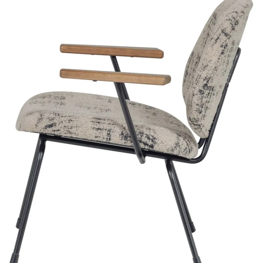 - Een stijlvolle eyecatcher voor jouw interieur: De unieke combinatie van een eigentijdse print, strak metaal en warme houten armleuningen geeft je kamer direct een trendy boost.